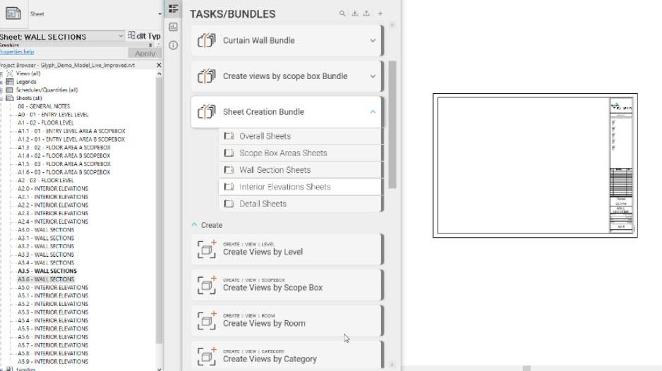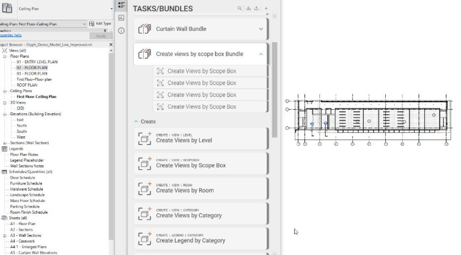 Glyph est un plugin indispensable pour Revit conçu pour automatiser et standardiser les tâches de documentation les plus chronophages. De la création de vues et de feuilles à l'annotation et à la cotation, Glyph transforme votre méthode de travail. Grâce à son système de "Bundles" personnalisables, vous pouvez regrouper plusieurs tâches et synchroniser vos standards sur l'ensemble de vos projets.