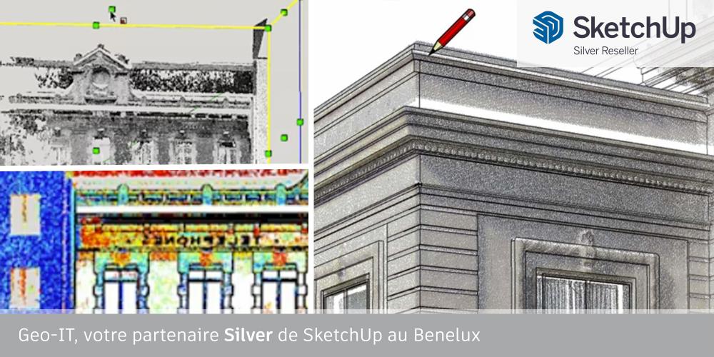 Geen extra software of complexe conversies meer nodig: de scan en het BIM‑model worden samen uw geïntegreerde ontwerpreferentie. Dit is de ideale oplossing voor renovatie, as‑built‑modellering, BIM‑coördinatie tussen verschillende tools, erfgoedrestauratie of werfcontrole. Dankzij de native compatibiliteit met Trimble‑ en Autodesk‑workflows integreert SketchUp ProAdvanced naadloos in elke samenwerkingsstroom, van terreinmeting tot het definitieve 3D‑model.